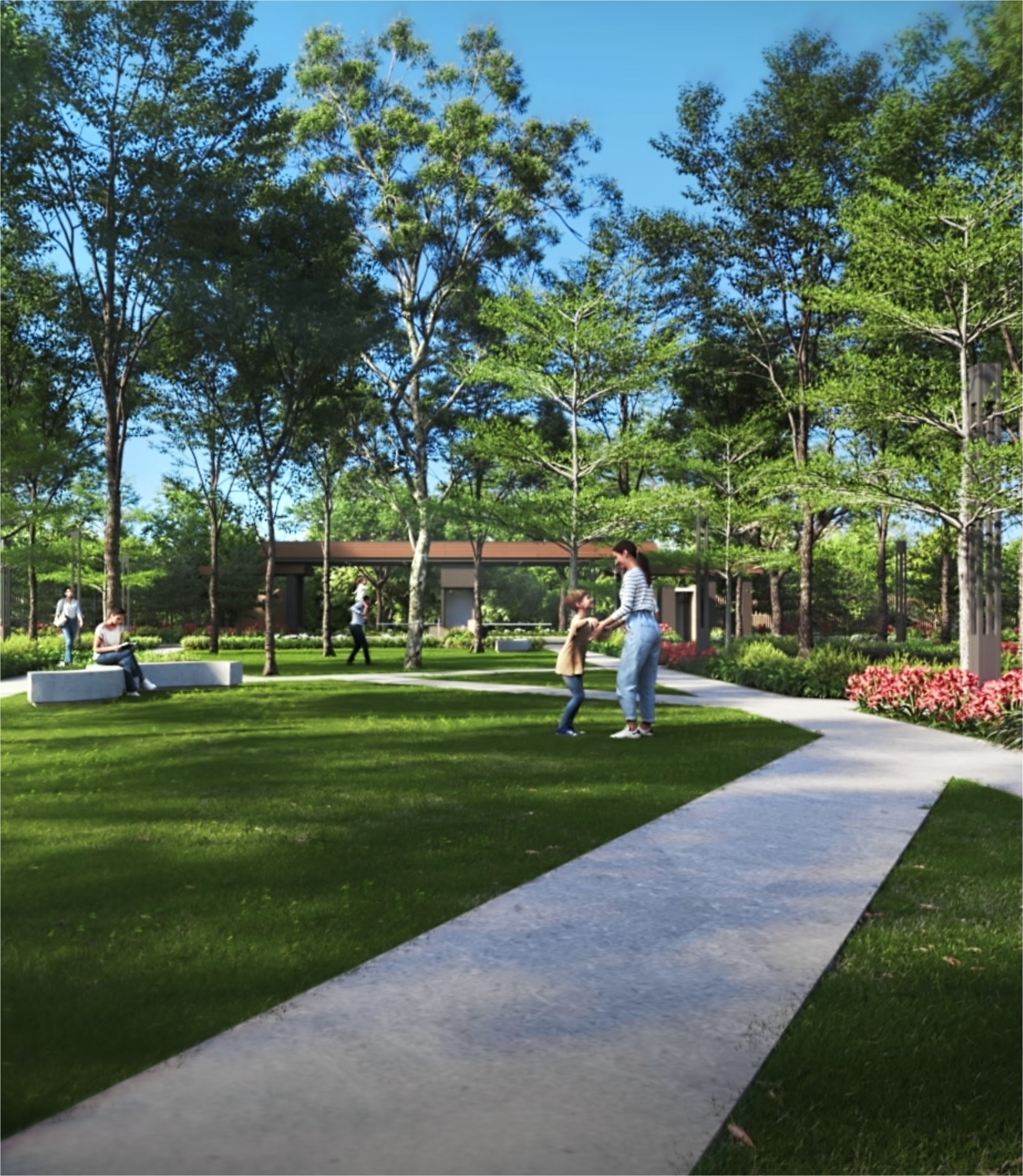 Area hunian akan dapat dinikmati dengan hadirnya Central Park sebagai area bersantai dan berolahraga di tempat terbuka. Ruang hijau di Tengah permukiman menjadi tempat beraktivitas tanpa perlu pergi ke tempat yang jauh.